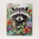 Racoon Watercolor Floral Portrait Jigsaw Puzzle