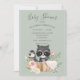 Sweet little watercolor racoon in a wicker basket and pretty flowers. Soft sage green background. So cute for that special baby shower. Other products are available. 100% customer satisfaction with “Zazzle”