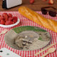 Racoon with a chip paper plate