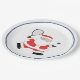 Racquetball-themed holiday party plates featuring funny Santa racquetball player.