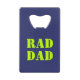 Rad Dad neon green and navy blue modern typography cool Credit Card Bottle Opener.