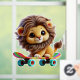 This image features an adorable lion cub with a flowing mane, perched confidently on a brightly coloured skateboard. Its large, expressive eyes and gentle smile exude a sense of playful charm. The vibrant rainbow stripes of the skateboard add to the overall cheerful and whimsical feel of the image. A cute, fluffy lion cub with a full, soft mane, riding on a colourful skateboard. The lion cub has a joyful expression, with big, expressive eyes