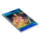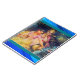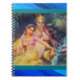 Vintage calendar image of Radha and Krishna in a romantic mood with a waterfall and peacocks in the background