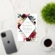 Our Radiant Bloom wedding invitation surrounds your wedding details with a geometric frame of painted watercolor flowers in burgundy marsala, blush pink and navy blue, with green eucalyptus foliage. A modern yet organic choice in green and white with lush, colourful botanicals and handwritten lettering, with luxe gold foil trim.