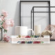 Elegant floral desk nameplate features two lines of custom text for your name and title or business name. Personalize with your details in modern soft black lettering on a blush pink stripe, bordered by jewel toned flowers and botanical foliage in shades of blush pink, burgundy plum, navy blue and rich green.