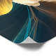 The image showcases an abstract floral design with a vibrant colour palette. The artwork features layered, petal-like shapes in shades of yellow, orange, white, and turquoise. These translucent forms create a sense of depth and movement, resembling stylised flowers. The background is dark, which makes the colours pop.