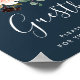 Designed to match our Radiant Bloom wedding collection, this elegant floral sign invites wedding guests to sign your guestbook. Personalise with two lines of custom text in calligraphy script and traditional serif lettering (shown with "Guestbook; please leave your wishes for the new Mr. and Mrs. [name]"), framed by lush watercolor jewel tone flowers and greenery on a rich navy blue background.
