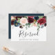Indicate reserved seating at your wedding with this chic jewel toned floral sign. Personalise with two lines of custom text in calligraphy script and modern block lettering (shown with "Reserved" and the name of the guest with reserved seating), framed by lush watercolor flowers and green foliage in rich autumn shades/