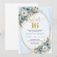 Radiant Dusty Blue Floral Sweet Sixteen Birthday Invitation