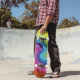 This one of a kind skateboard surface pattern is ready for your personal touch. Design is a bold swirled pattern of all the colours in a groovy tie-dyed rainbow. Just edit your name or other text and choose your other options for just the deck or complete board and size in the drop down menu.