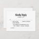 Plan your special day in style with our beautifully designed wedding RSVP cards. With a perfect blend of simplicity and modernity, these cards are sure to impress your guests. Crafted with love and attention to detail, our RSVP cards will add a touch of elegance to your wedding stationery. These cards feature a bold and eye-catching "Kindly Reply" message, typeset in a sleek and sophisticated font. The clear and legible design enables quick and hassle-free responses so you can easily manage your guest list and ensure that each response is accounted for. Whether you're having an intimate gathering or a lavish celebration, these cards will assist you in organising your wedding with utmost efficiency. Ready to make a lasting impression on your guests? Order your set of RSVP cards today and experience the ease and elegance they bring to your wedding preparations.