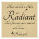 The verse is a gentle reminder of God’s love and how His presence brings radiance, not shame. It's perfect as a daily encouragement for yourself or a meaningful gift for someone walking through a new season of faith, healing, or renewal.