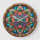 Transform your space with the hypnotic beauty of the Radiant Peacock Feather Mandala clock. This stunning timepiece features a high-definition graphic that creates a breathtaking kaleidoscopic effect. The intricate mandala design is composed of layered peacock feather motifs in a vibrant palette of teal, emerald, magenta, and warm amber tones. Every detail, from the delicate "eyes" of the feathers to the swirling organic patterns, radiates from the centre with high-energy precision. The clock face is encased in a rich, wood-textured border featuring carved scrollwork accents and stylised white numerals. While the artwork masterfully mimics the dimensional depth of layered paper-cut art or hand-carved wood, this is a durable high-definition graphic application on a premium clock face. It is a prestigious statement piece for any modern or bohemian-inspired interior.