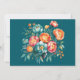 A vivid and detailed floral arrangement showcasing peonies in turquoise, orange, and teal hues. The rich, layered petals and luminous centres are complemented by green leaves and smaller orange blossoms. The bouquet is artistically composed with the flowers radiating outward, evoking elegance and harmony.