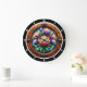 Illuminate your interior with the breathtaking beauty of the Radiant Protea Stained Glass clock. This sophisticated timepiece features a high-definition graphic that masterfully replicates the glowing, translucent quality of artisanal stained glass. The central artwork depicts a lush arrangement of blooming Protea flowers in a vibrant spectrum of sunset oranges, deep purples, and emerald greens. The design is enhanced by "jeweled" light-catching accents that give the appearance of warm, integrated illumination. The scene is encased in a rich, copper-toned circular frame with elegant metallic flourishes at the cardinal points. While the artwork captures the dimensional texture and luminous depth of authentic glasswork, this is a durable high-definition graphic application on a premium round clock face. It is a prestigious and modern focal point for any luxury home decor.