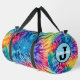 This eye-catching Gear bag features a radiant rainbow Tie Dye design with intricate, starburst-like patterns across its surface. It's a vibrant Kit bag and a cheerful Weekender perfect for travel adventures.