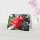 A vibrant birthday card showcasing a red camellia flower flourishing in the sunshine, with the option to personalize the front, inside, and back with a name and your own special message.