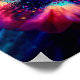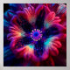 An explosive, paint-splatter bloom bursting with magenta, purple, cyan, and coral energy—a dynamic and kinetic abstract floral art print
