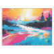 Positioned on the right side, the sun casts a warm glow, accompanied by a striking white ray that extends across the canvas, adding a touch of celestial magic. The water below mirrors the celestial spectacle, showcasing a fusion of blue, pink, and white tones that echo the vibrant landscape "Radiant Serenity" invites you to witness the vibrant dance of colours, where the brilliance of the sunset is mirrored in the tranquil waters below. This painting is a visual symphony, a testament to the beauty of nature's transitions, and a captivating addition to any space seeking a burst of bright, serene energy.