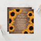 Radiant rustic sunflower wedding invitation featuring elegant script calligraphy and modern typography against a wooden barn background. Simply add your wedding details. Exclusively designed for you by Happy Dolphin Studio. If you need any help or matching products please contact us at happydolphinstudio@outlook.com. We're happy to help you make your wedding the most beautiful day!