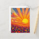 Send a burst of colour with the Radiant Sunset Over Whimsical Landscape postcard. Featuring a breathtaking sunset in vibrant oranges, yellows, and pinks, this postcard captures a whimsical scene adorned with wildflowers and abstract patterns. Perfect for sharing with friends or framing as a piece of art, this postcard is a delightful reminder of nature's beauty and positivity. Whether for special occasions or everyday greetings, it’s sure to brighten anyone's day!