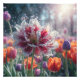 Immerse yourself in the vibrant beauty of this captivating tulip, where nature's artistry meets digital magic. The intricate petals, adorned with a mesmerising blend of pink and white, dance gracefully amidst a field of colourful tulips. Sparkling water droplets, illuminated by the warm sunlight, add a touch of whimsy to this enchanting scene. This breathtaking artwork is a celebration of spring's vibrant energy and the delicate beauty of nature.