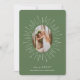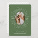 Share holiday greetings with these chic and minimalist Christmas photo cards featuring your favourite vertical or portrait orientated photo, framed by a hand drawn sunburst illustration in white on muted willow green. "Always merry" appears beneath in white serif and italic lettering. Personalise with your custom greeting and names beneath. An elegant holiday card with a modern and minimal aesthetic that lets your favourite photo shine.