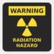 Warning - Radiation Hazard - black sticker with caution yellow lettering and radiation symbol.