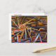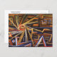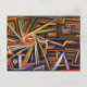 A fine art postcard with the painting Radiation and Rotation by Paul Klee (1879-1940). This geometric abstract showcases lines radiating from a circle. Klee, a Swiss-born German artist, employed colour theory in his work