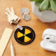 Orange and black radiation symbol keychain with "Danger - Radiation" in repeating orange lettering.