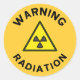 Warning - Radiation - orange sticker with black lettering and yellow and black radiation warning sign.