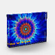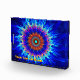 A multi-colour fractal image, reminiscent of psychedelic tie-dye; orange pink and blue on a darker background. Customise by adding your own text.
