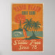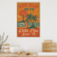 Bring home the rhythm of the waves and the warmth of vintage island style with this retro-styled Radio Beach Surf Club artwork. Inspired by classic 70s surf culture and Caribbean coastal charm, this design features bold tropical colours, palm silhouettes, and a nostalgic broadcast tower set against a glowing sun. Worn paper texture and soft fading around the edges give it a weathered, sun-soaked feel — like something pulled from the wall of an old surf shack.