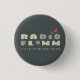 ready to post: the RADíO FLoMM logo on pinback! TUNE IN to RADíO FLoMM, available wherever most podcasts stream.