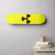 Skateboard deck with radioactive symbol on it.