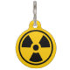 Round radioactivity warning sign. Vector icon with customisable colours. Custom background. Custom text at back side.