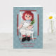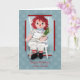 Vintage rag doll with daisy bouquet in slit corner red frame for birthday. Customise card with any name.