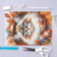 A delightful autumn-core feline watercolor portrait of a blue-eyed longhair kitty.