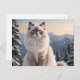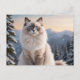 Ragdoll Cat on Snowy Mountain with Serene Winter Postcard