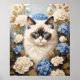 Ragdoll Cat With Blue Hydrangea Flowers Poster