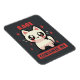 This little cat exudes pure chaotic energy within. With artwork featuring a cute little chibi style white cat with a happy expression and sparkly eyes. However that hides it's possible unhinged inner rage. Art by Sarah ( TechraNova )