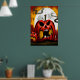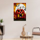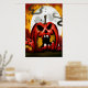 This pumpkin is so angry that he turn red, a smaller red angry pumpkin ti the left, and large moon on a red and yellow sky. This is a AI generated Halloween art.