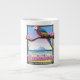 Raiatea Society Islands,Tahiti,French Polynesia travel poster of a parrot by a sandy beach.