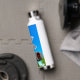 The bottle looks even better in real life. The ice cubes I put in lasts all day! I have my bottle with me all the time. It's summer and having something cold to drink feels amazing. With this bottle I always have something super cold. I have only tried the hot drink once and it lasted a long time as well. The color blue is a navy blue and the white printed on it is vibrant. It printed perfectly. I love my personalized smile water bottle.