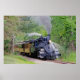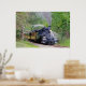 A powerful locomotive rolls through beautiful countryside, billowing smoke and steam as it thunders past beautiful forests.