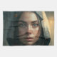 Young woman in the rain, in the style of spatial concept art, dark gold and red, detailed facial features, detailed character characters, hyper-illustrportrait, enchanting realms