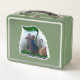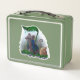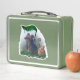 This is a standard metal lunchbox that appears to work just fine. We designed this box ourselves with an uploaded photo and custom text on the front and back. It looks absolutely beautiful except the front of the lunchbox is not centered like it shows in the photo. The print borders don't align with the inset flat part of the box where the preview photo online showed it perfectly centered in there. The back looks nice and centered though.