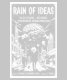 A vintage-inspired sci-fi poster depicting a literal "brainstorm" where ideas fall like rain, causing chaos in a 1950s cityscape. Perfect for fans of retro pulp, surrealism, and mid-century aesthetic.
