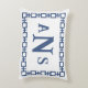 This rain slate blue Greek key monogram design features a structured square-link border with an interlocking pattern that adds a bold, geometric touch. The repeating square motif, inspired by classical Greek and chinoiserie aesthetics, creates a balanced frame around the central monogram. The combination of clean lines and intricate details makes this design a striking yet timeless choice for personalisation.