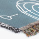 A quality printed throw has its advantages. This is a much finer weave throw than its loopier cousins, and though lighter, it is worth the investment for custom room accessorizing. The back is much prettier than the typical brown, and the fringe on the long sides very vivid, the selvage nicely done. Before photographing, I washed the throw in cold water, delicate, with a thicker woven throw the same size. On tumble dry low, this throw was dry in half the time as the other. This is a very practical quality if you use throws for furniture covers or to wrap up in frequently. The sleekness of the fabric makes it a great layer for accenting or protecting without the feeling of sitting on too much stuff. Perfect for napping or when you feel a light chill coming on. The color printing is beautiful and on this fabric, matched the design and color of my Photoshop image. This is an advantage for blending room fabrics and colors. The fringe on the short sides prints the colors from the design image and therefore varies from the side fringe. I streaked a white fractal line through the plaid pattern to give the illusion of weaving. This printed as crisp as an illusory thread, and put some white in the short side fringe, showing another advantage of print vs loomed- for artistic purposes, line lines, detail, and color integrity can be planned and preserved. My loomed throws have color limitations and more of a needlepoint texture. Print throws reproduce an exact image. The throw felt a little stiff straight out of the package, but this went away in the first delicate wash. Of course I searched the wash water for ink or bleeding and there was none.